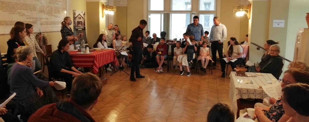 Április 15-én a zsidó és más felekezeti testvérekkel részt vettünk a kerület által szervezett Holokausz emléksétán és koszorúzásokon Millisits Máté vezetésével.