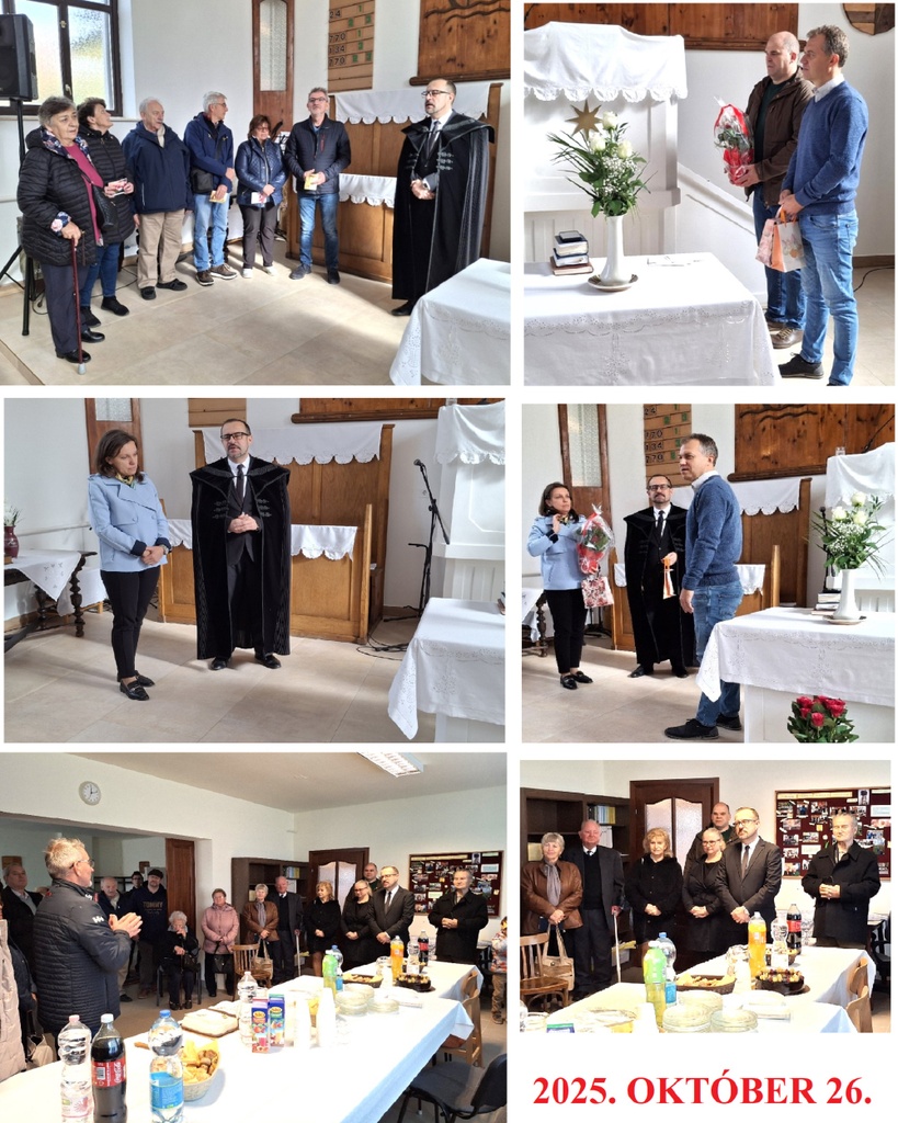 2025. október 26.-án, vasárnap, a délelőti istentisztelet végén Szabó Róbert főgondnok és Laczikó Tamás presbiter az egyházközség nevében köszöntötte az október hónapban született gyülekezeti tagokat, köztük pedig az előző nap a 47. életévét betöltő Gergely Szabolcs lelkész urat is, aki éppen 10 éve, 2015. október 25.-én tartotta első istentiszteletét Isaszegen. Az alábbi fényképeken ő a feleségével együtt is látható.