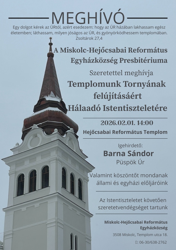 MISKOLC-HEJŐCSABAI REFORMÁTUS EGYHÁZKÖZSÉG HONLAPJÁN SZERETETTEL KÖSZÖNTJÜK!