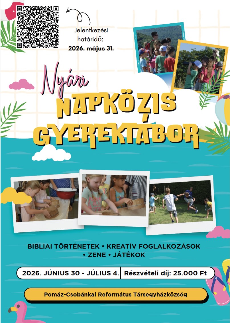 A napközis táborba 6. életévét betöltött gyerekektől, a 6. osztályt befejezett gyerekekig mindenkit szeretettel várunk. (A nagyobbakat az ifjúsági táborba várjuk.) A tábor költsége: 25.000 Ft, testvéreknek: 23.000 Ft/fő. Kérjük a jelentkezési lapokat legkésőbb 2026. május 31-ig juttassák vissza/töltsék fel 10.000 Ft előleg befizetése (banki átutalás vagy készpénzes befizetés) mellett.